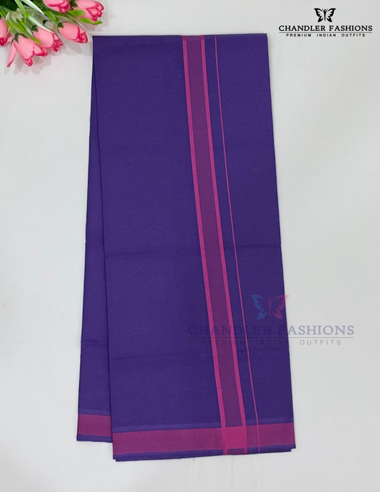Beautiful Violet Color Cotton Dhoti With Zari Border For Men
