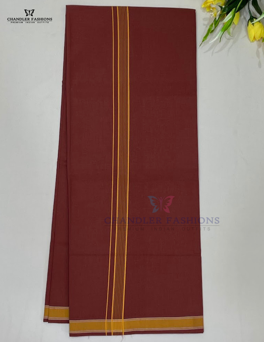 Beautiful Maroon Color With Yellow Boder Cotton Dhoti For Men