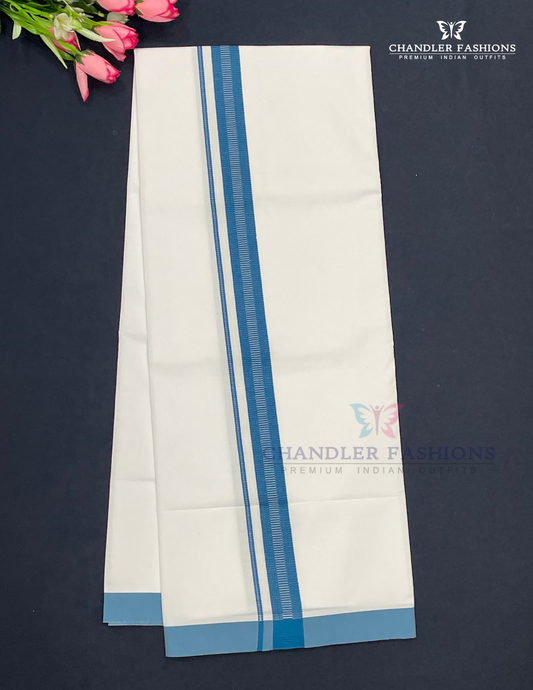 Alluring Men's White Color Cotton Dhoti With Blue Border
