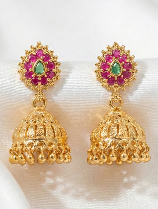 Dazzling Pink Color Stones Gold Plated Jhumka.