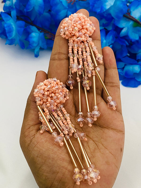 Alluring Peach Colored Beaded Fancy Crystal Earrings