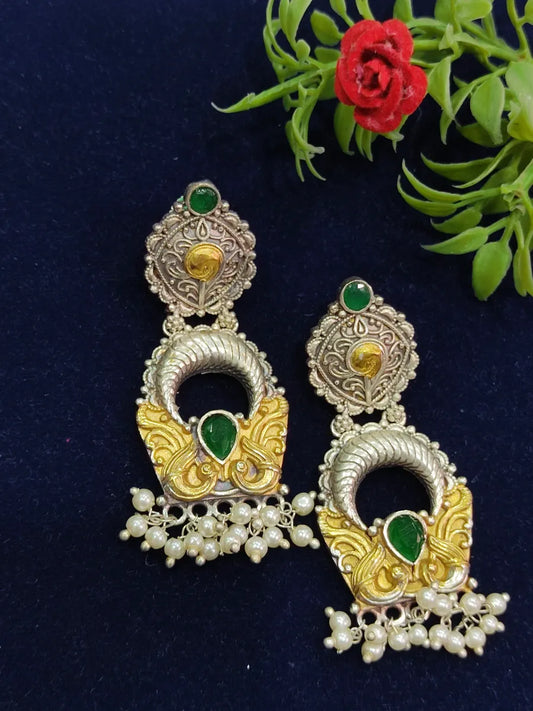Beautiful Oxidized Peacock Pearl Beaded Earrings Made With Brass And Copper