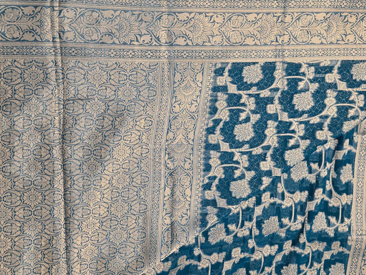 Attractive Blue Color Banarasi Silk Saree With Silver Flower Design And Grand