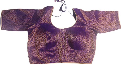 Attractive Front Open Purple Color Brocade Elbow Sleeve Readymade Blouse For Women