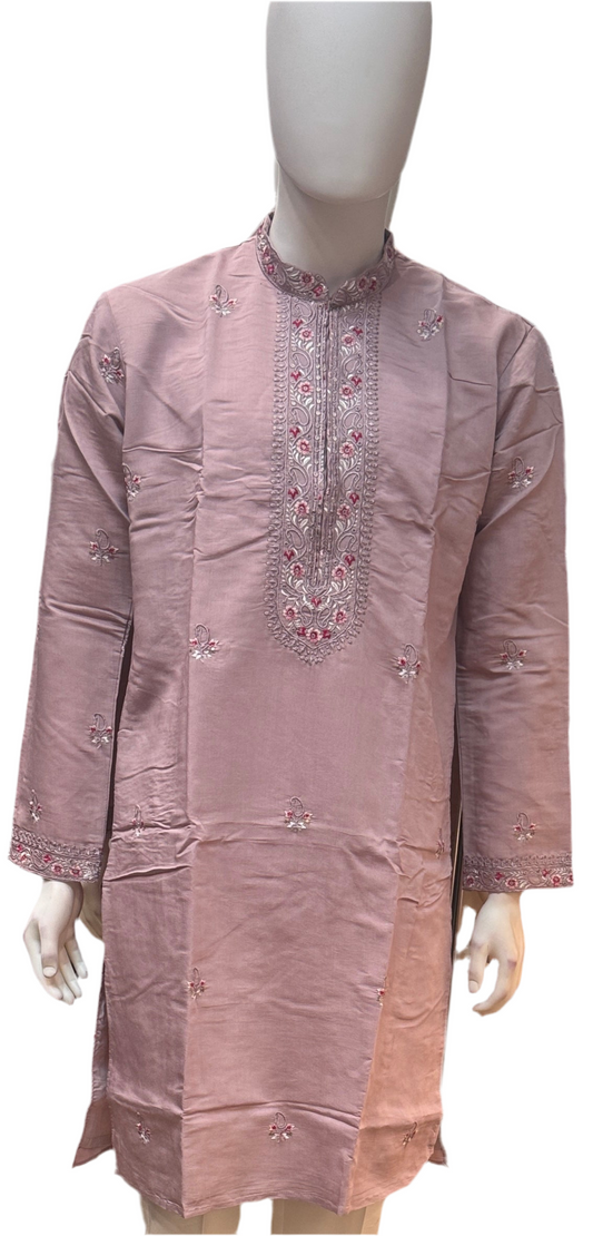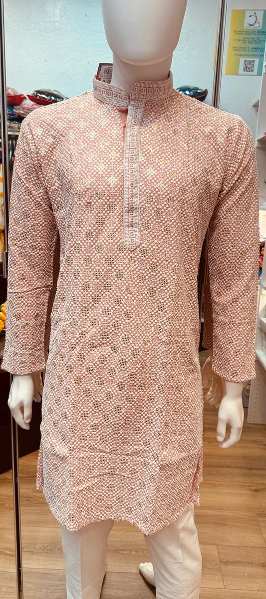 Attractive Light Pink Color Premium Rayon With Embroidery and Sequins Work Kurta Suit For Men