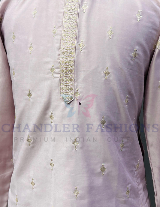Charming Light Purple Color Matka Silk With Embroidered Buti Designer Kurta Suit For Men