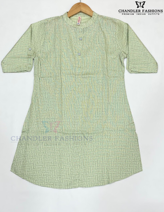 Delightful Pista Green Color Cotton Kurti With Printed Work For Girls