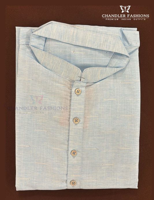 Delightful Light Blue Color Cotton Kurta With Pajama For Men