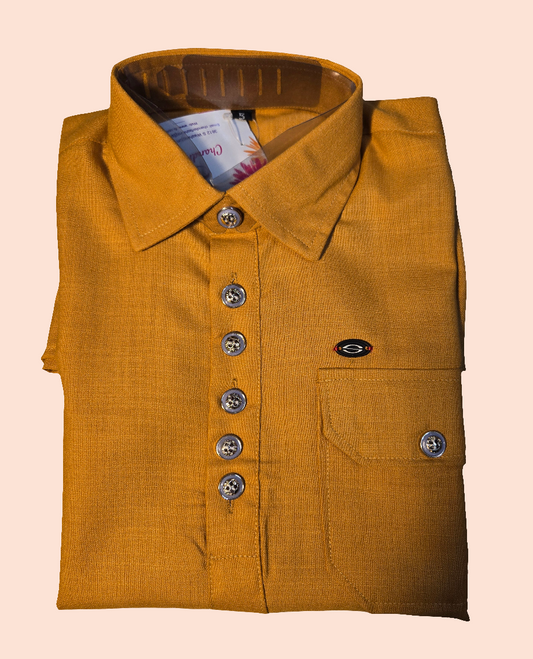 Elegant Mustard Yellow Color Cotton Kurta With Pajama Pant For Kids