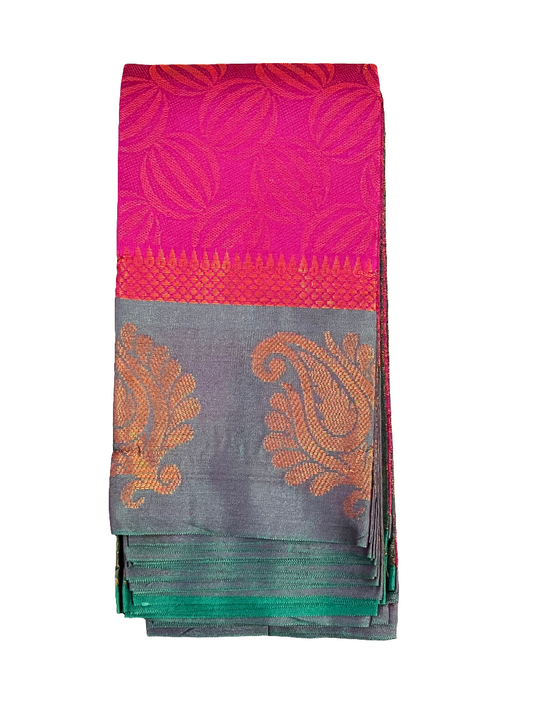 Elegant Pink And Olive Green Color 100% Pure Kanchi Silk Saree For Women - SILKMARK CERTIFIED