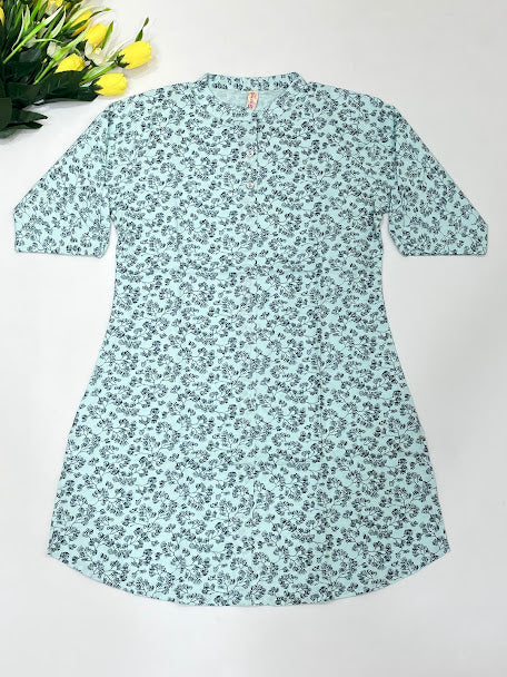 Exquisite Light Blue Cotton Kurti With Printed Work For Girls