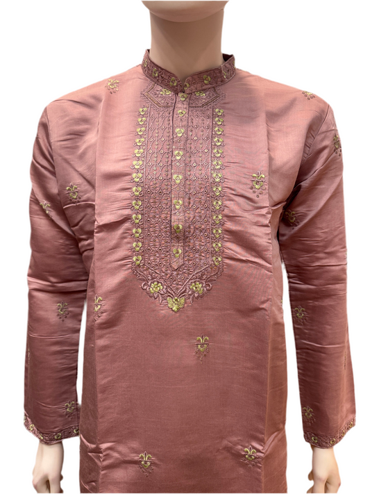 Pretty Light Purple Color Cotton With Embroidery Work Kurta Suits For Men