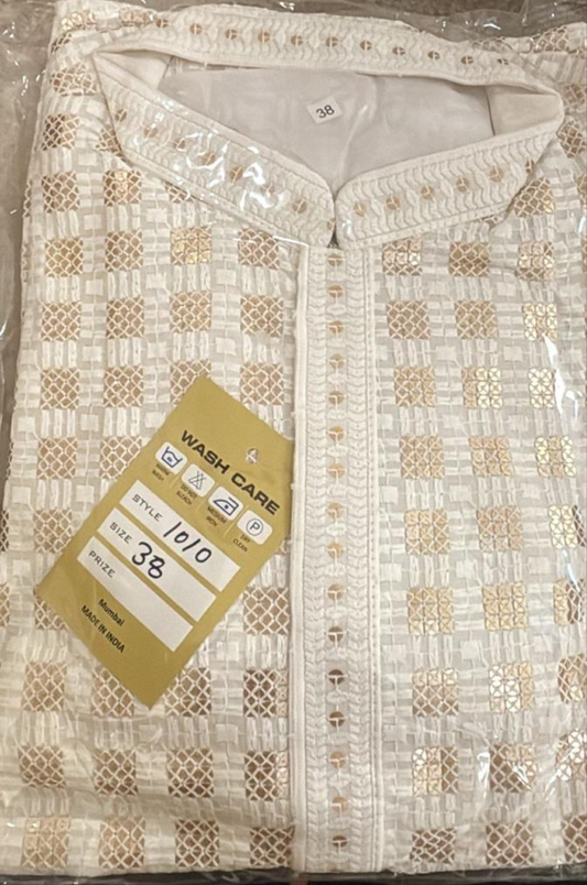 Wonderful Off White Color With Sequins And Embroidery Work Kurta Suits For Men