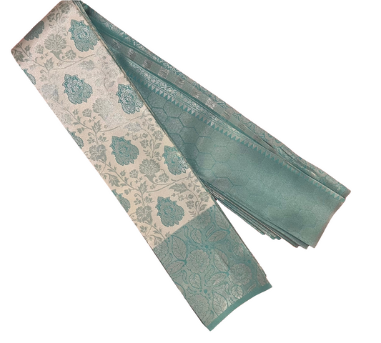 Alluring Teal Green Flower Design Tissue Silk Saree