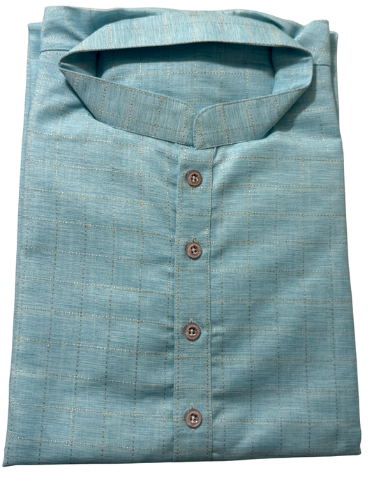 Alluring Sea Blue Color Cotton Men's Kurta With Pajama Pant