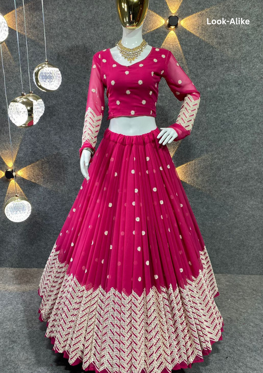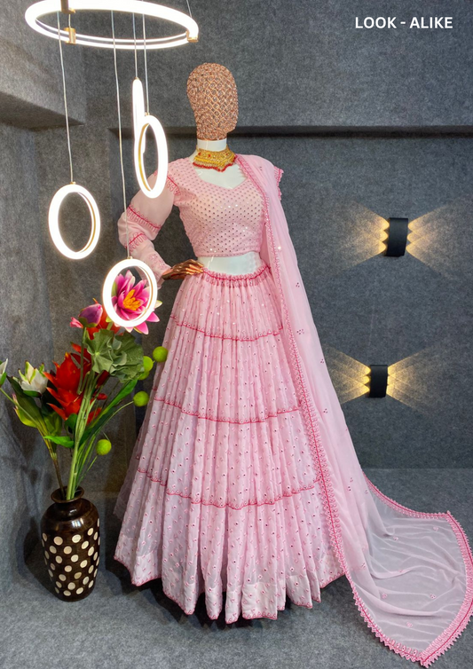 Attractive Pink Color Embroidery Party Wear Georgette Lehenga choli With Mirror Work Border