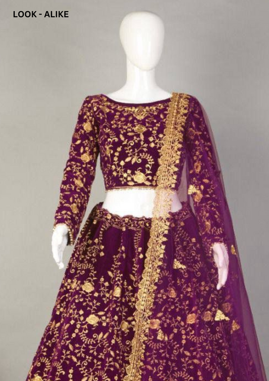 Dazzling Purple Color Designer Embroidery Work Velvet Lehenga Choli For Women