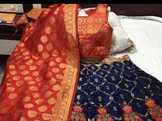 Beautiful Red With Blue Color Embroidery With Sequins Work Lehenga Choli