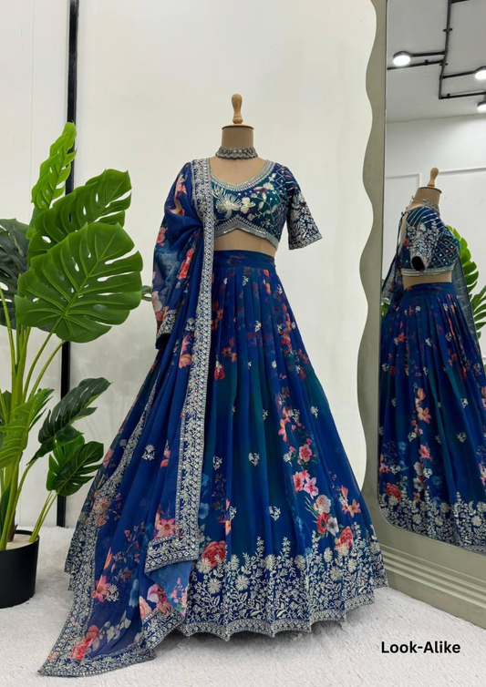 Amazing Dark Blue Color Embroidery Work Lehenga Choli With Dupatta For Women