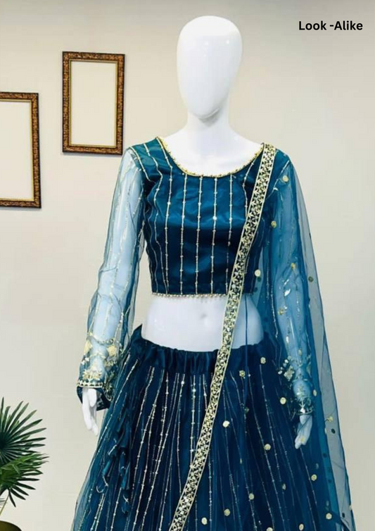 Attractive Teal Blue Color Embroidered Lehenga Choli For Women