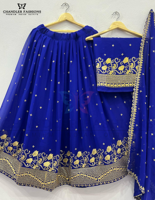 Attractive Royal Blue Color Faux Georgette With Embroidery Sequins Work Lehenga Choli