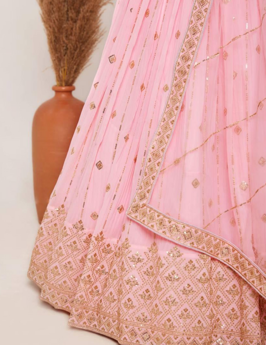 Attractive Light Pink Colored Heavy Georgette Embroidery And Sequins Work Lehenga Choli With Dupatta Set