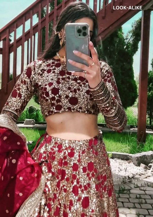 Charming Dark red Color Embroidery With Sequins Work Lehenga Choli For Women