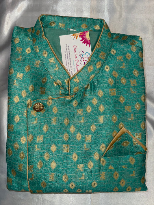 Dad & Son Pure Cotton Silk Regular Pajama Set With Jacket - Sea Green