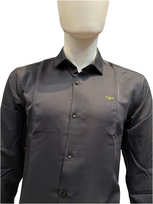 Pleasing Dark Grey Color Full Sleeve Shining Silk Shirts For Men