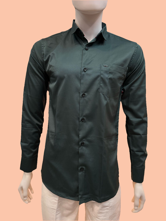 Pleasing Dark Green Color Full Sleeve Shining Silk Shirts For Men