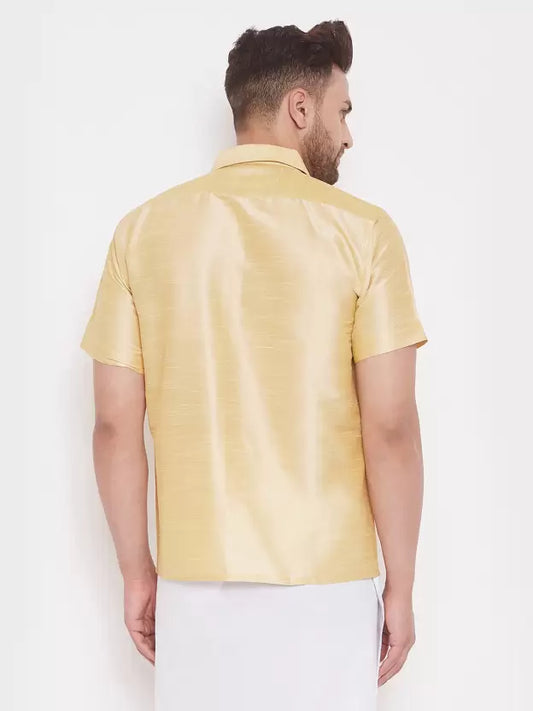 Alluring Yellow Color Formal Half Sleeves Silk Shirt