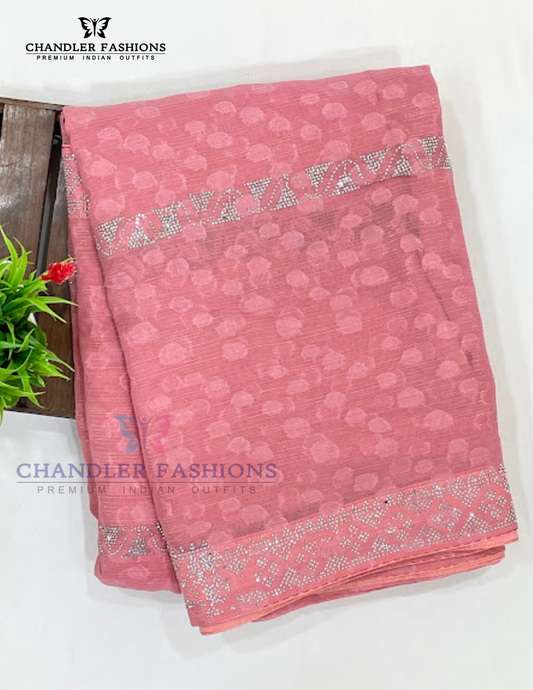 Fabulous Peach Color Georgette With Stone Work Saree For Women