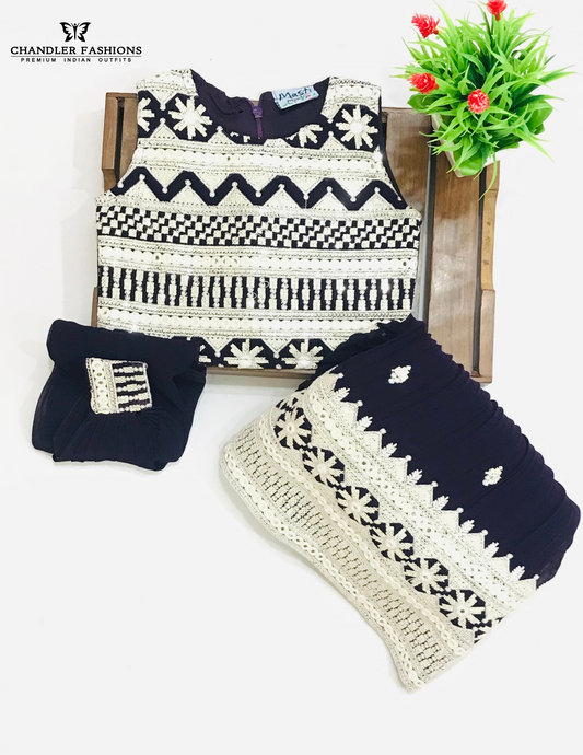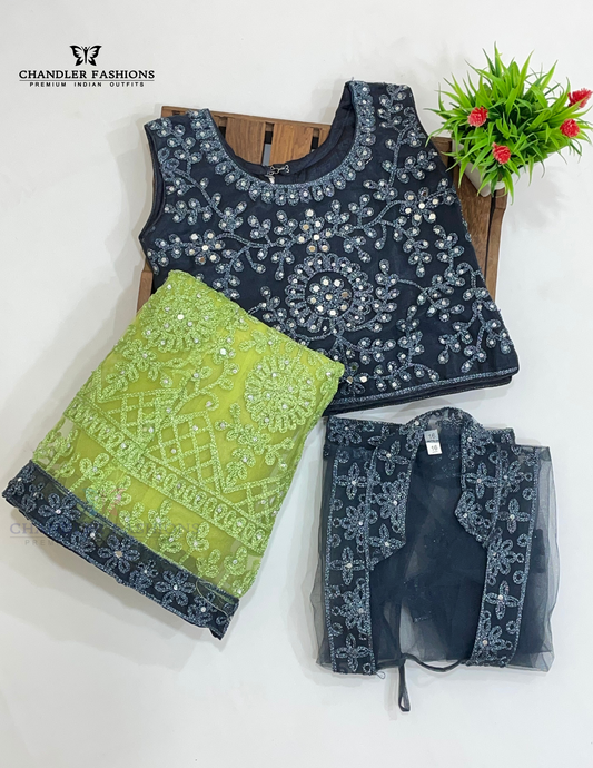 Dazzling Dark Blue Colored Embroidery Work Choli Sets For Girls