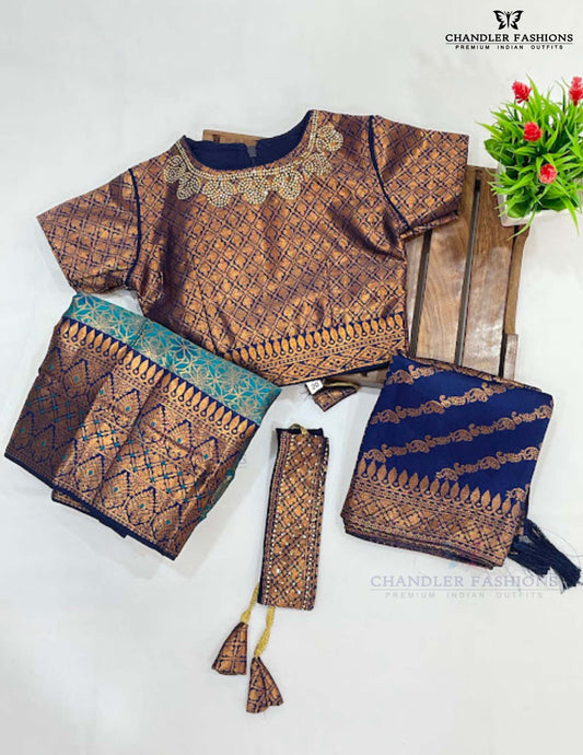 Attractive Blue Color Silk Choli Set With Zari Work For Girls