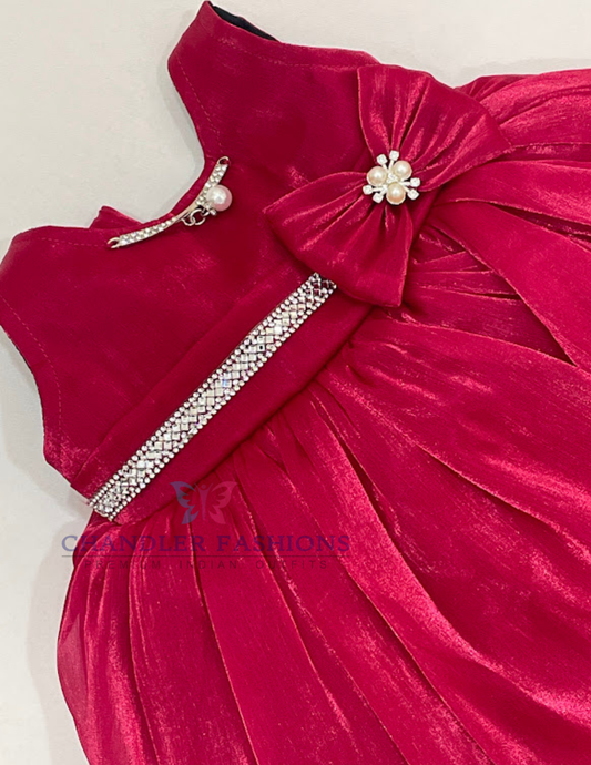 Graceful Dark Pink Color Organza With Stone Work Frock For Girls