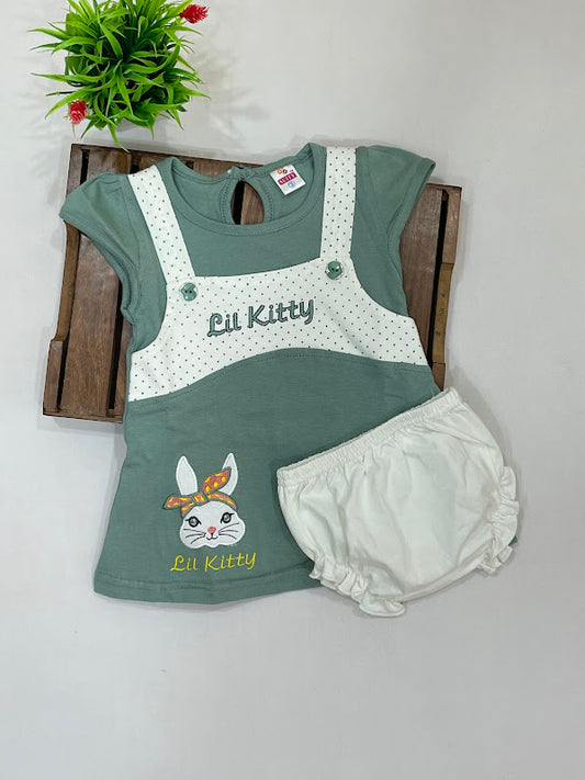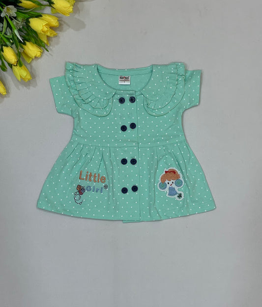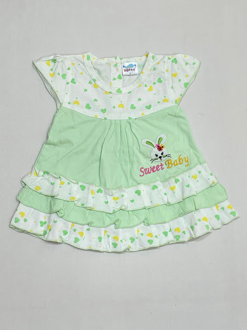 Wonderful Green And White Color Cotton Frock For Girls