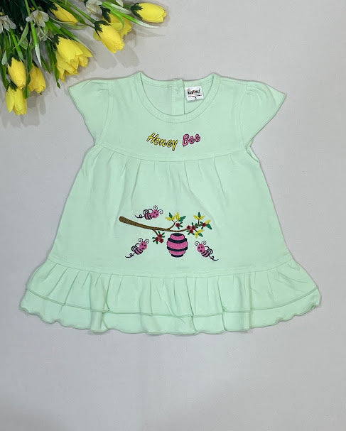 Alluring Light Green Color Soft Cotton Frock For Girls