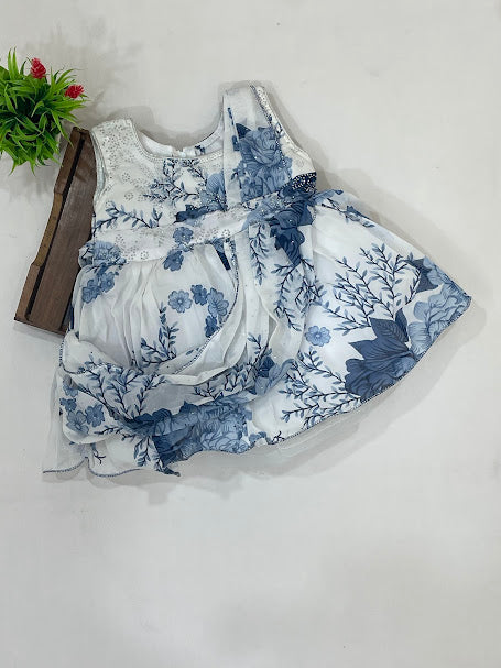 Stunning Blue And White Color Cotton Frock For Girls
