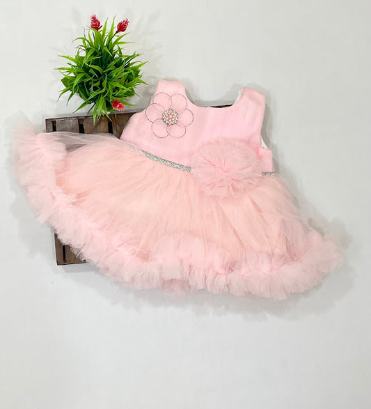 Charming Light Pink Color Soft Net With Stone Work Gown For Girls