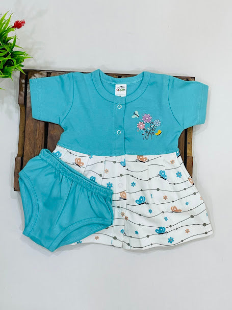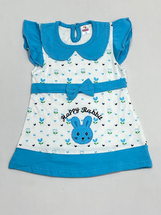 Stunning Sky Blue And White Color Soft Cotton Frock For Girls