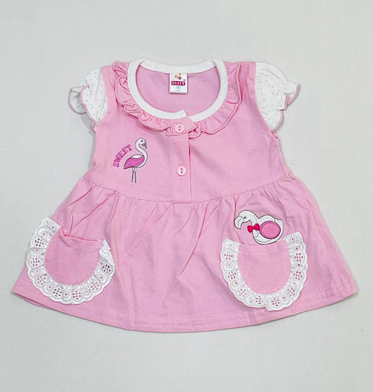 Attractive Baby Pink Color Soft Cotton Frock For Girls