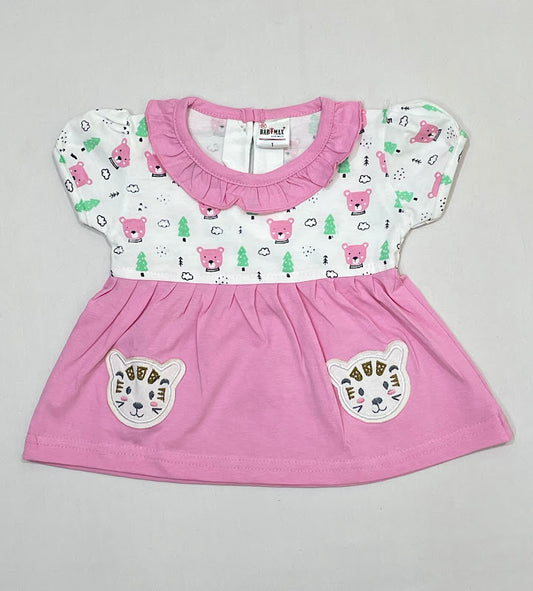 Beautiful Pink Color Cotton Frock For Girls