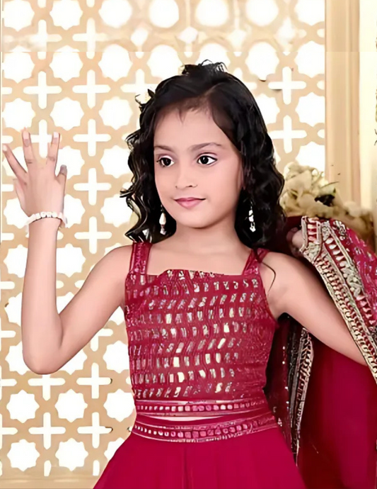 Alluring Light Red Colored Embroidery And Sequins Work Choli Sets For Girls