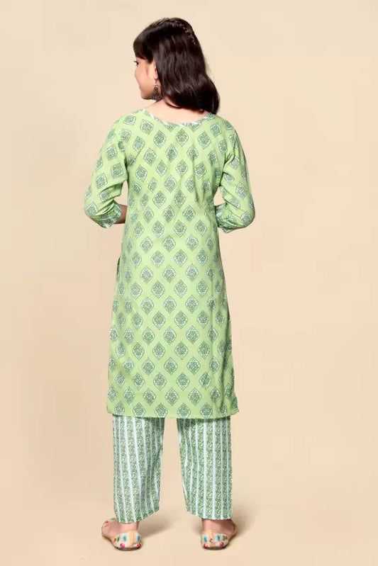 Charming Light Green Colored Cotton Kurti Suits For Girls