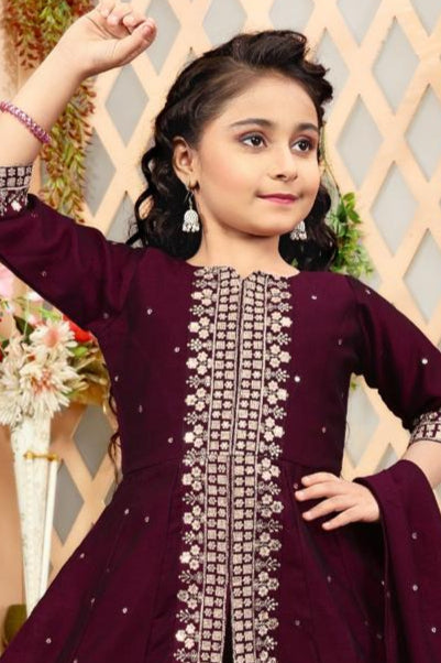 Elegant Wine Colored Embroidery Work Girls Kurti Suit