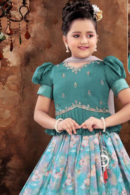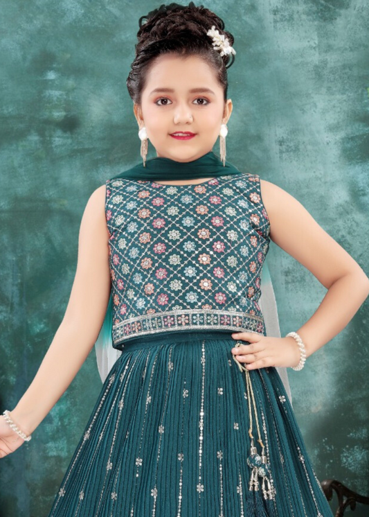 Gorgeous Teal Green Color Georgette Embroidery And Sequins Work Choli Set For Girls