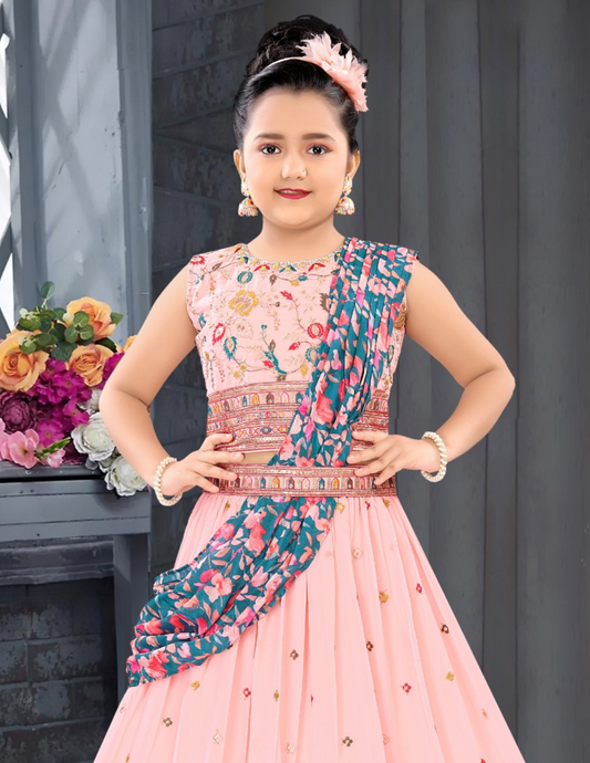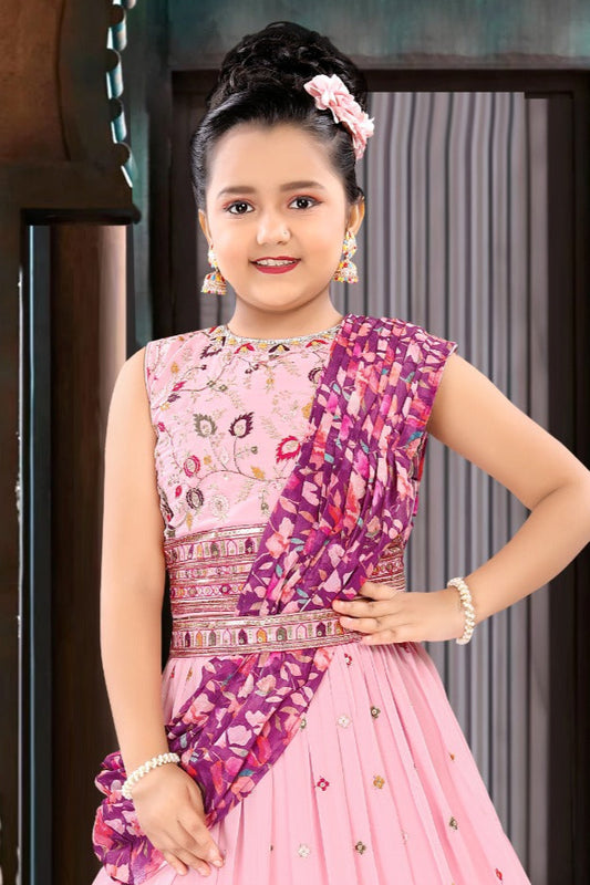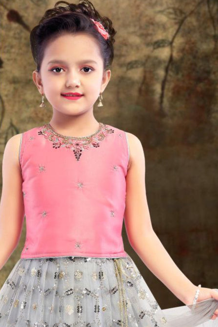 Charming Light Pink Color Embroidery And Sequins Work Choli Sets For Girls