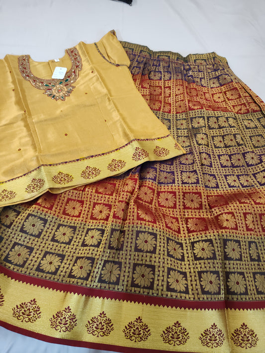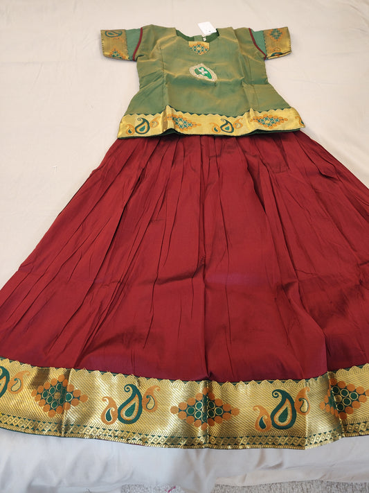 Traditional Maroon Color Designer Silk Langa Set For Kids