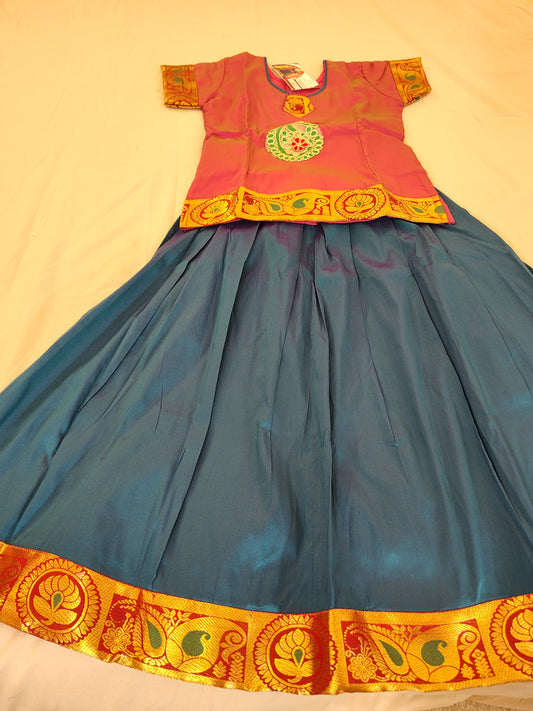Gorgeous Blue Color Silk Langa Set For Kids