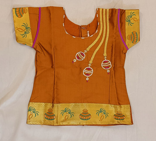 Beautiful Brown Stone Work Langa Set For Children